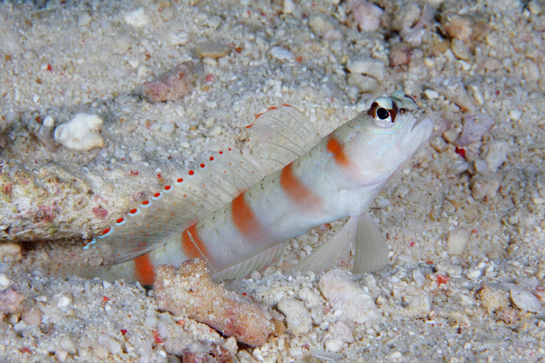 Amblyeleotris rubrimarginata “Redmargin shrimpgoby” (Красноокаймленный бычок-креветкоголовый)